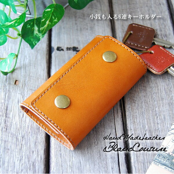 今だけ!お試し価格&送料無料革工房のヌメ革手作り【プチ財布付き♪シンプル6連キーケース】6色よりオーダーメイド♪<小銭入れ・コインケース・キーホルダー>